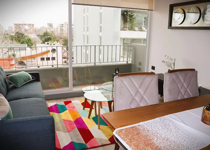 The 2-room Hom I 2D2B 4Pax I Parking I Metro Ines De Suarez Fb106 Apartment Santiago is located around a 5-minute walk from Ekklesia Iglesia Cristiana and 3.5 km from the Parque Metropolitano de Santiago. This spacious apartment offers a patio with views of the city.
